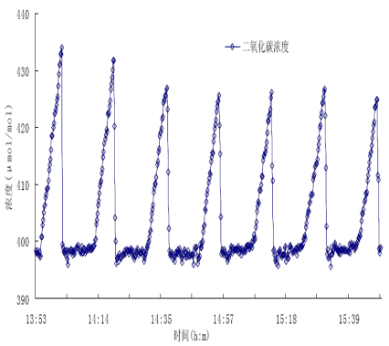 圖a RR-7330 測量系統測量閉路箱內CO2累積過程及線性關系(中國農業大學,韓廣魯,2010)