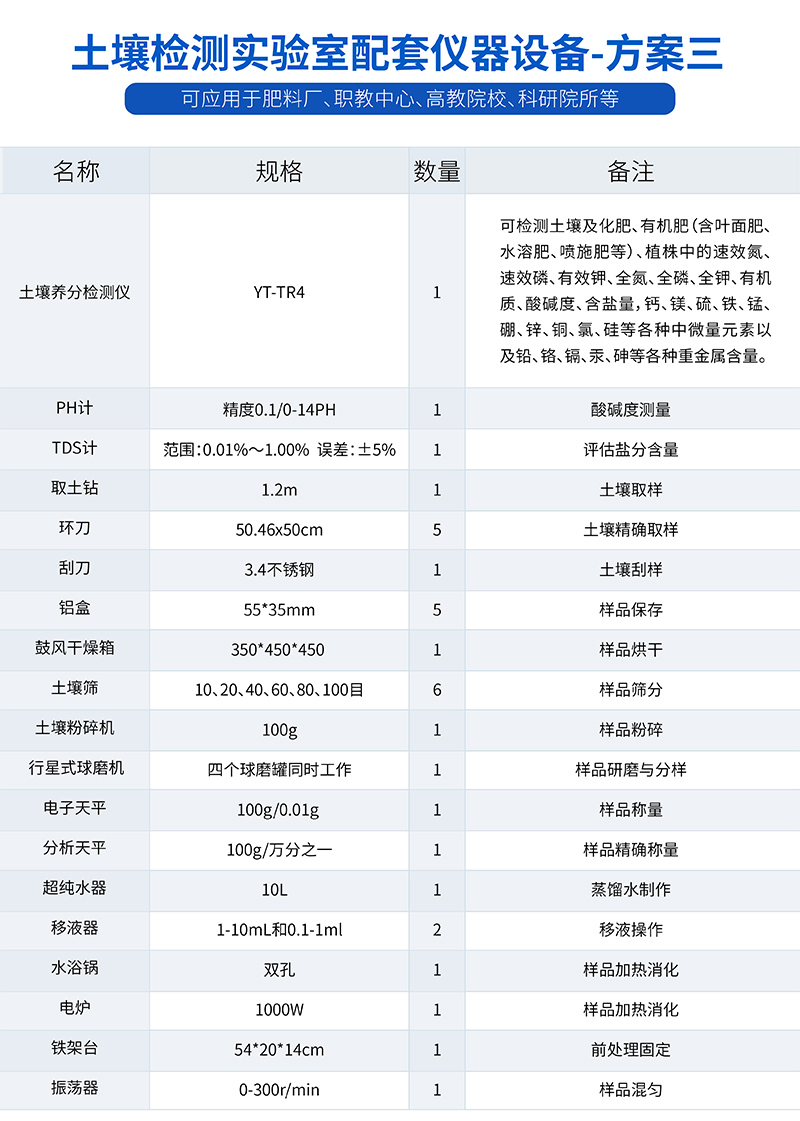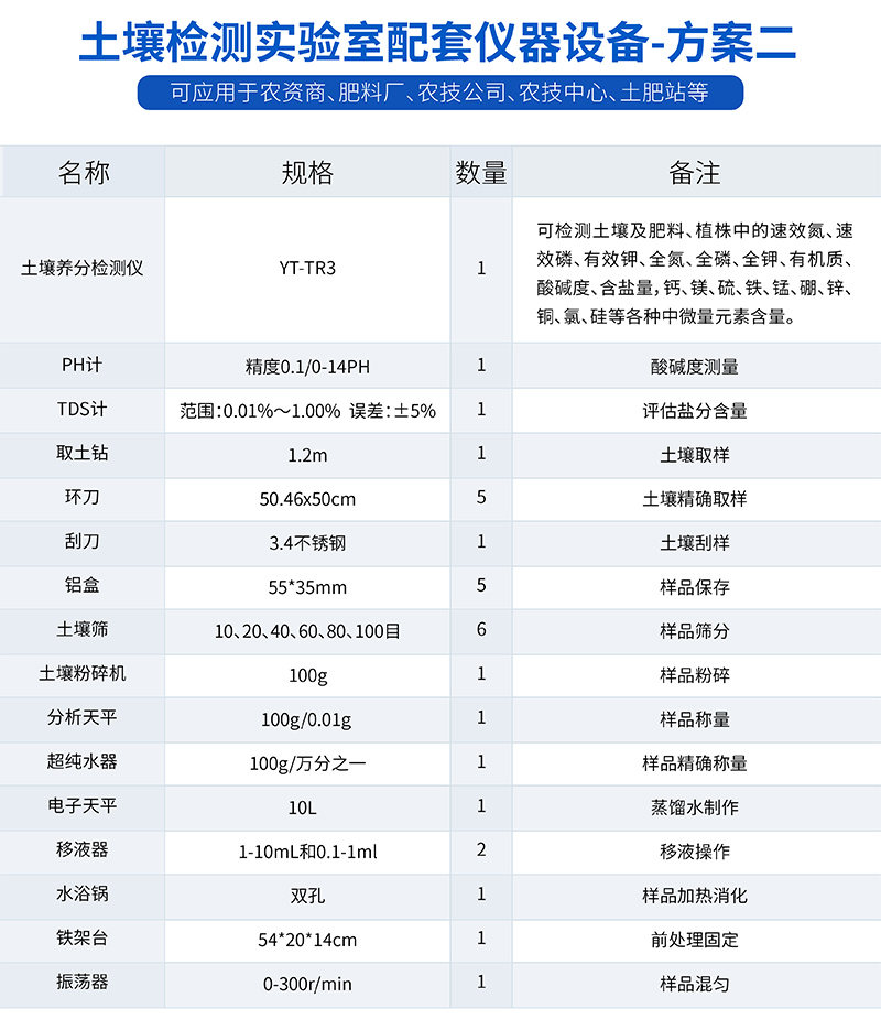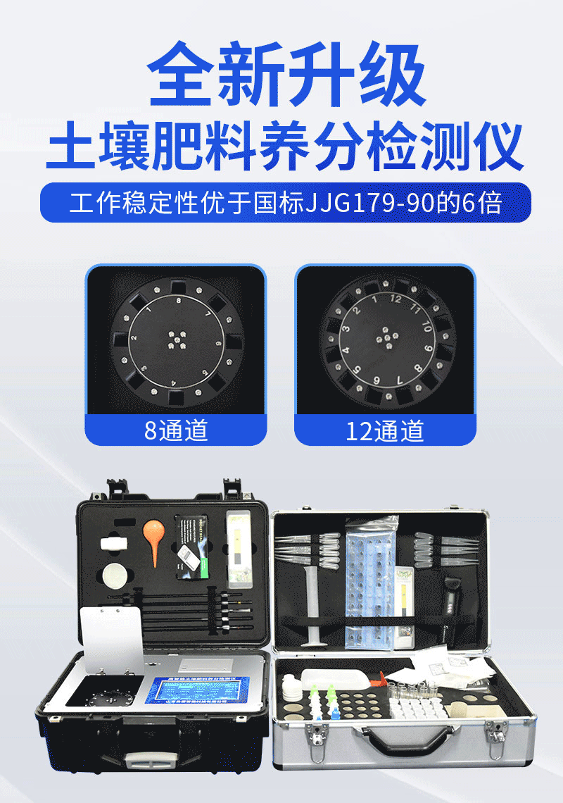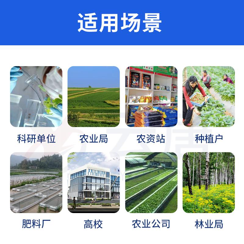 配套齊全:該儀器集藥、器、儀為一體,攜帶方便,相當于一個小型移動實驗室,無需用戶自配附件,亦可靈活野外流動測試。適于農業服務部門或農資經銷商、高教院校、科研院所、合作社、肥料廠商、大種植戶測土施肥和鑒別肥料真假及環保檢測應用。