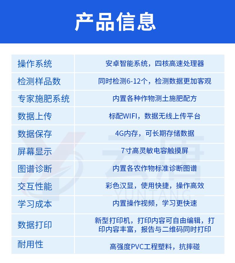 描述:高智能多參數土壤肥料養分速測儀安卓智能操作系統,采用更加**和人性化操作,儀器標配wifi聯網上傳、···